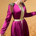 Stunning Kaftan Rhinestone Embroidered Loose Dress. This loose-fitting kaftan dress is made from high-quality satin fabric, providing both style and comfort.