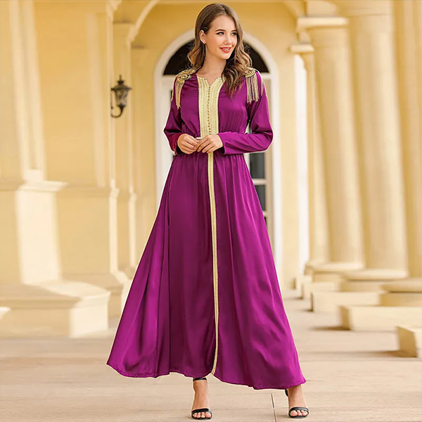 Handmade Satin Kaftan Dress with Embroidered Stones for Special Occasions