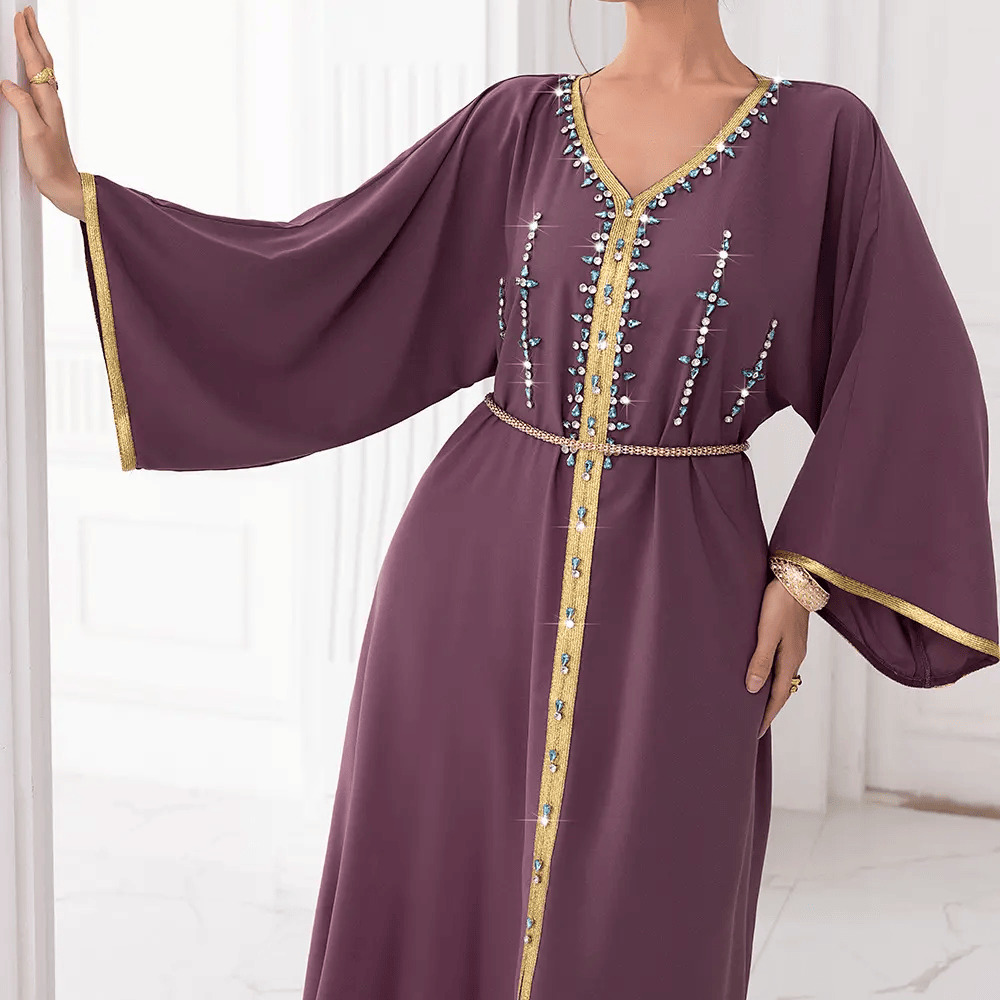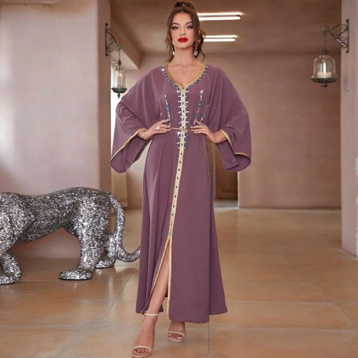 Be the first to review “Rhinestone Embroidered Trim Split Belted Kaftan” Cancel reply