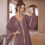 Handmade Satin Kaftan Dress with Embroidered Stones for Special Occasions